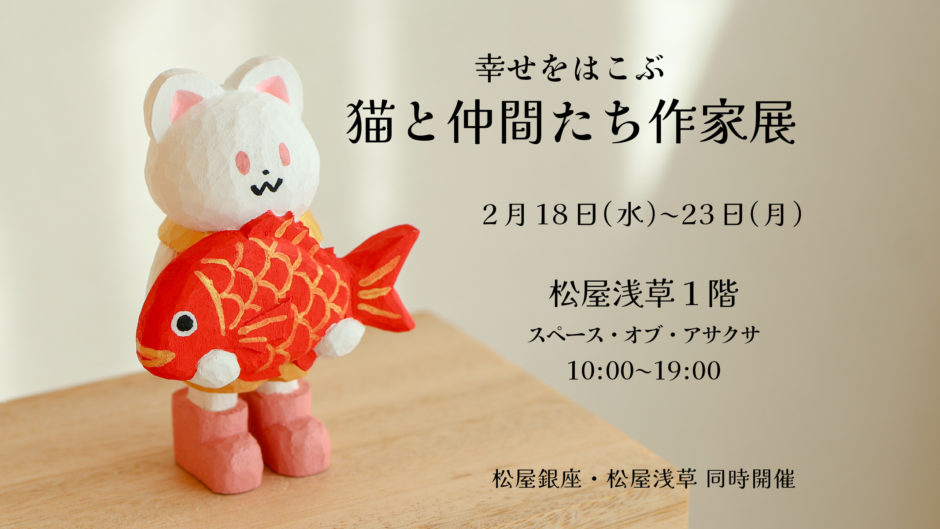 松屋銀座・松屋浅草で同時開催される企画展「幸せをはこぶ 猫と仲間たち作家展」