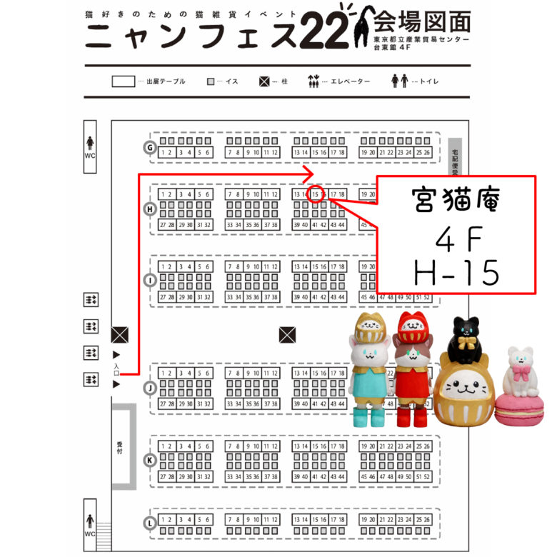ニャンフェス会場は2フロア(4F、5F)ありますが、宮猫庵は【4F/H-15】です